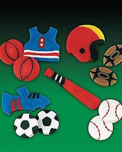 バスケ、アメフト、サッカー、野球をモチーフにした消しゴム 3点セットです。それぞれのテーマで 3つの消しゴムが入っています。