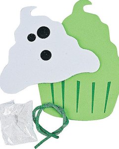 パンプキン型のガムドロップ、蜘蛛の巣型のキャンディー、ゴースト型のカップケーキを象ったオーナメントを作成するキットです。