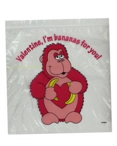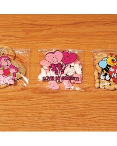 透明のチャック式ビニール袋で、ゴリラ、ハチ、ハート形キャンディーの絵柄が 12枚入っています。チョコレートやクッキー、キャンディーなどを入れてギフトにどうぞ。