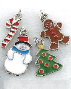 エナメル加工されたクリスマス柄のチャームです。ご家庭のチェーンや細めのサテンリボンに付けてネックレスにしたり、携帯のアクセサリーなどにどうぞ。