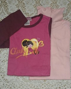 [色・デザイン] ローズピンクのロールネック 長袖Tシャツとプリント柄の長袖Tシャツの 2枚組。