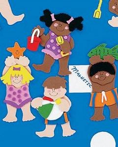 海水浴をテーマにした手のひらサイズの平たい人形キットです。 男の子と女の子の 4体セットでお届けします。