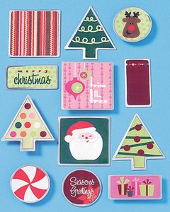 正方形、ツリー型、丸、長方形の計 12枚のタグのセットです。アルミの縁取りがお洒落です。