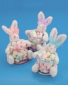 柔らかく光沢のあるウサギのぬいぐるみが容器を抱えているデザインです。イースターのキャンディー入れや小物入れにどうぞ。バニーの頭にはオーガンジーのリボンが付いています。