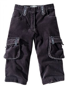 [色・デザイン] お色はダークグレー。サテン使いがかわいいカーゴパンツです。裾バックはゴム入りでギャザーが寄っています。