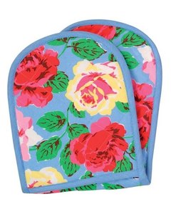 [デザイン] A ローズマロック(Rose Maroc) / B ポップフラワー (Pop Flowers) 。 厚手のキルティング素材で、端のポケットに両手を入れて使用するタイプです。