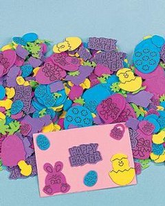 2.5cm - 5cm大のフォーム製のピースが 40個入っています。色とりどりのピースはイースターエッグ、バニー、お花、 HAPPY EASTER のメッセージなど、イースターをテーマにした絵柄になっています。