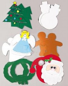 20cm大の厚紙ボード 6枚セット。スノーマン、クリスマスツリー、天使、ジンジャーブレッドマン、クリスマスリース、サンタの 6柄になります。ご家庭のボタン、リボン、ラメ、ポンポンなどで自由に飾りつけしてください。