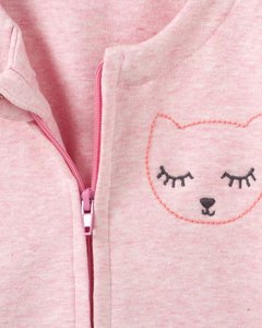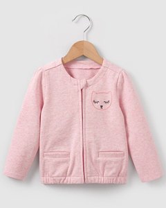 ピンクのトップは胸元にネコの刺繍入り。フロントファスナー開閉。