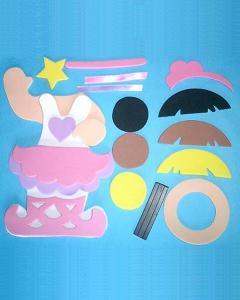 完成させたバレリーナの顔の部分に丸く切り取っがお子様の顔写真を貼り付けてください。肌色 2体セットとなります。ご姉妹やお友達と一緒にお作りください。