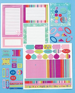 冬の世界がテーマのパンチアウト (切り抜き)、フレーム、タグ、 30cm四方のペーパーシート、ボーダー、スライド、ラベルなどが入ったセットです。