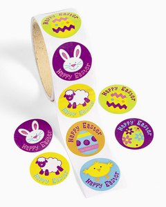 直径 3.5cm 大のイラストシール。バニー、イースターエッグ、ヒヨコ、子羊など。 6枚のシールは全て絵柄が異なります。