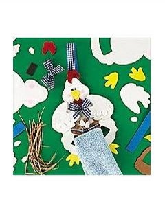 フエルト地のとさかを頭の上に貼ります。とんがった部分が顔にかかるようにします。