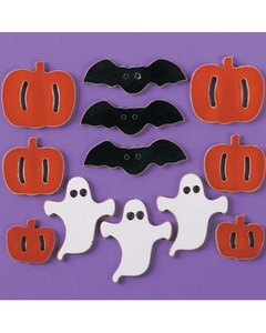パンプキン 6個、ゴースト 3個、コウモリ 3個の計 12個のピースです。スクラップブッキングなどのクラフトにどうぞ。