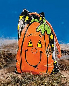 横 14 x 縦 19cmビニール製巾着バッグです。ハロウィンの Trick or Treat でお菓子を詰めてみてはいかがでしょう?
