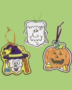 12.5cm大の色塗りオーナメント。厚手のトレーシングペーパーのような素材で、うっすら光を通すので、サンキャッチャー風に窓に掛けてもいいです。