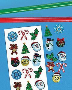 クリスマス・カラーの赤と緑の鉛筆 2本とクリスマスをテーマにしたキラキラ光るミニシールのシート 1枚のセットです。鉛筆は同色の消しゴム付き。