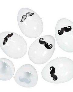 白のプラスチック製の容器に口ヒゲが描かれています。