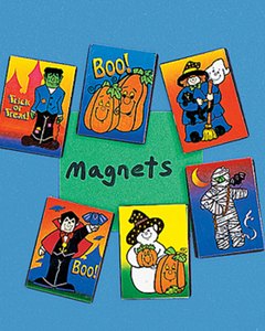 横 3cm x 縦 4cm大のマグネットの表面にハロウィンにちなんだシールが貼られています。マグネットは薄めで柔軟性があるタイプになります。