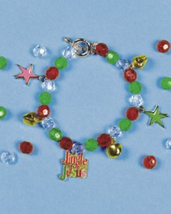 7mm大のプラスチック製ビーズとパーツのセット。ジングルベルとジーザスの J を組み合わせて、 Jingle for Jesusのチャームも付いています。 30cmのナイロンコード入り。