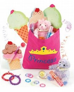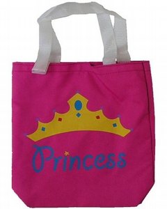 鮮やかなピンク色のキャンバス地のバッグに美しいティアラと Princess の文字がプリントされたバッグです。2枚目の画像はバッグにギフトを入れたイメージとなります。