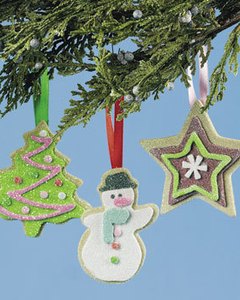 ツリー、スノーマン、星の 3つのオーナメントを作成するキットです。