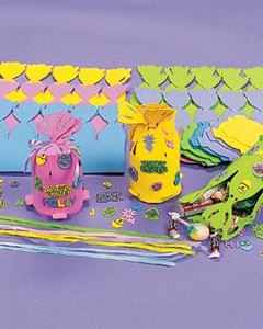 [色・デザイン] ピンク、黄色、オレンジ、黄緑、水色、藤色のスポンジフォームに付属のシールを貼り付けるクラフトキットです。お菓子を詰めたらキットのサテンリボンで結んで出来上がりです。底をしっかりと固定されたい時は木工用ボンドをご利用ください。
