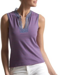 [色・デザイン] 紺と紫のストライプ。フロント切り込み部分にレースが付いたフェミニンなデザインです。