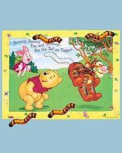 ディズニーのくまのプーさんの Pin the tailのゲームセットです。目隠しをしてティガーのしっぽをぴったりの位置に付けた人が勝ちます。