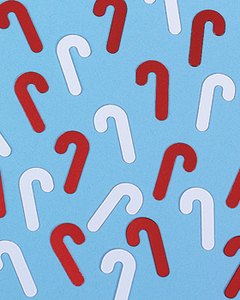白と赤のキャンディースティック型コンフェティ。約 50g 入っています。