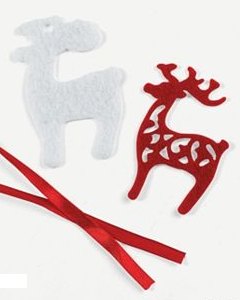 2枚のフェルトピースを重ねてリボンを付けるだけの、簡単でお洒落なオーナメント作成キットです。