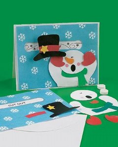 スノーマンの帽子がくるりと回転する仕掛けカードの作成キットです。飾りピースを貼る際はクラフト用ボンドや両面テープをお使いください。