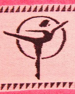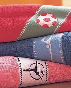 [色・デザイン] お色はラズベリー。画像一番下のタオルです。ポーズを取ったダンサー柄が入っています。画像では見えにくいのですが、ジャガード織り込みで大きなバレリーナが描かれています。