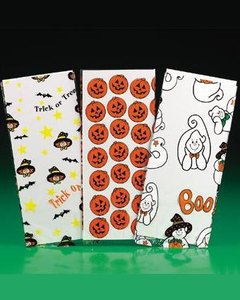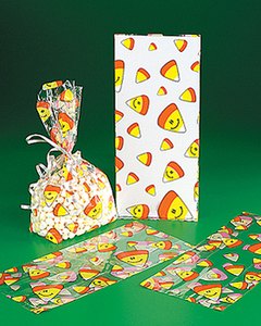 透明に Jack-O-Lantern、ゴースト、キャンディーコーンの絵柄が入ったビニール袋。クッキー、ポップコーン、キャンディーなどを詰めるのにいいですね。 注) 1枚目の画像左端の絵柄が 2枚目のキャンディーコーンの絵柄になります。