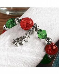 クリスマスカラーの赤と緑のガラスビーズ、シルバー調のビーズ、ヒイラギのチャームで作るナプキンリングのキットです。