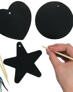 10cm四方のシートの表面をキットのスティックで擦りながら絵や文字を描きます。シートの表面の黒い膜が削られて下から虹色の背景が線に沿って見えてきます。