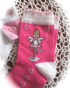 [商品説明] イギリスのデパート John Lewis で見つけたかわいい靴下です。 ピンクにかわいいフェアリー柄。部分的にシルバーの糸が入っています。