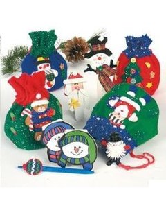 15cm大のフエルト地のポーチの中にクラフトキット、文具、雑貨が入っています。幼稚園、小学校低学年向け。ツリーにかけたり、ツリーの下に飾ってください。