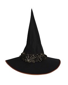[デザイン] 黒のサテン地に黒のネット、黒とオレンジのオーガンジーのレイヤーがかわいい魔女のコスチュームです。ウエストと型にはクモの巣のパターン。ハット付き。画像のドレスと右側の帽子がセットになっております。ドレスの上の帽子は含まれておりません。