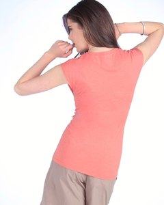 [色・デザイン] お色はローズ色(Chinese rose)。タンクトップに近いショートスリーブの Tシャツです。