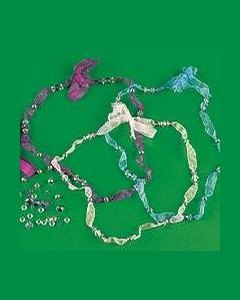 オーガンジー調のリボンとビーズで作るネックレスのキットです。リボンのお色はお任せください。