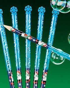 鉛筆の上半分がシャボン玉の容器になっていて、雪の結晶が付いたスティックでシャボン玉を作ることができる変わった鉛筆です。シャボン玉の液は空輸の関係で量が少なくなっています。ご家庭のシャボン玉液を補充してお使いください。