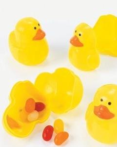 かわいいアヒルの子の形をしたプラスチック製容器。
