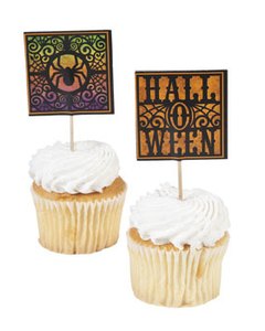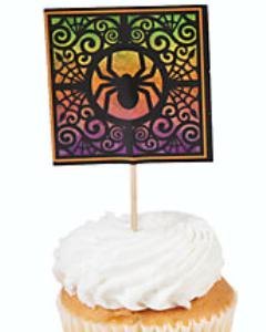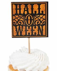 カップケーキやポテトサラダなどに挿すだけでハロウィンらしくなる飾り用ピックです。爪楊枝に 5cm四方の紙製のデコレーションが付いています。