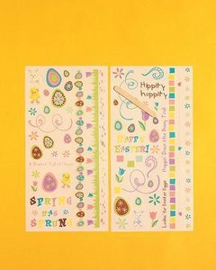 イースターにちなんだ卵や花、フレーズ、アイコン、ボーダーなどのラブオンシールが 2シート入っています。全部で 60個のラブオンシールが付いています。