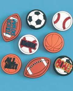 ラバークロッグ用のシュー・チャーム(靴アクセサリー) 2個セットです。バスケットボール、野球、サッカーの 3タイプ。ラバークロッグ、リュックサックやバッグなどのアクセサリーにどうぞ。