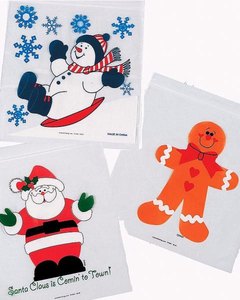 透明のチャック式ビニール袋で、サンタ、雪だるま、ジンジャーブレッドマンの絵柄が入っています。サンドイッチを入れたり、チョコレートやクッキー、キャンディーなどを詰めてギフトにどうぞ。