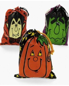 横 14 x 縦 19cmビニール製巾着バッグです。ハロウィンの Trick or Treat でお菓子を詰めてみてはいかがでしょう?