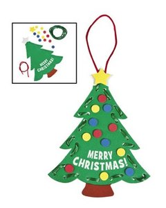 ツリー型のフォームピースにはコードを通すための穴が開いています。キットの緑のコードはツリーの縁の穴に通し、赤いコードはツリーてっぺんの穴に通してください。