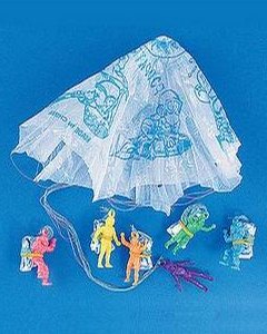 3.5cm 大のプラスチック製の兵隊にパラシュートが付いています。お色はお任せください。